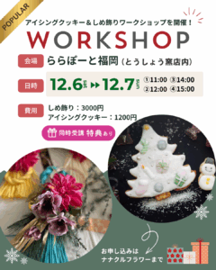 2025-11-15 2025-11-05 07.54.12 Home › 2025-11-05 07.54.12 関連記事 桜のリース ポットアレンジ 今なら特典つきのプリザーブドフラワー資格取得コースがおすすめ♪ フラワーエデュケーションジャパンの資格取得コースのご案内 2021 クリスマスコレクション ららぽーと福岡でワークショップ開催